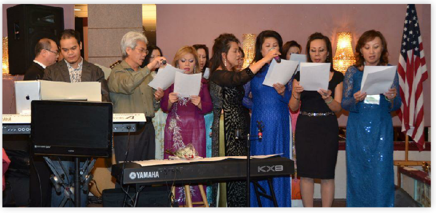 Xen kẽ trong bữa tiệc là các màn văn nghệ “cây nhà lá vườn” rất hấp dẫn với ban nhạc The Brothez nổi tiếng và được yêu thích nhất Denver. Những bản nhạc thương nhớ quê hương, những bản tình ca, rồi màn tân cổ giao duyên. Thật thú vị khi ngồi nhìn tuyết rơi lại được nghe mấy câu vọng cổ thật mùi mẫn của chị Hai miền Nam rồi lại được nghe nhạc phẩm “Hello Việt Nam” của Miss Asian American Colorado 2012 : một thiếu nữ Việt Nam tên là Nghiêm Stephanie Thùy Vy mới được chọn trong cuộc thi hoa hậu của những người đẹp sinh viên gốc châu Á đang học tại các trường đại học ở Colorado.