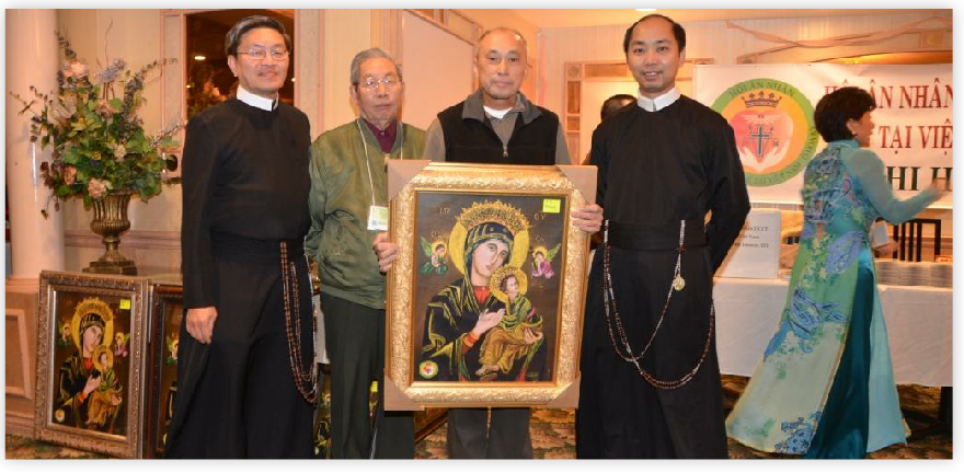 Ban Tổ Chức cũng góp phần nêu cao tôn chỉ của Dòng Chúa Cứu Thế về việc tôn sùng Đức Mẹ Hằng Cứu Giúp qua việc mời quan khách thỉnh các ảnh Đức Mẹ Hằng Cứu Giúp rất đẹp về gia đình để kính thờ. Quý Cha cũng đi đến từng bàn để cám ơn quan khách và chụp hình lưu niệm.