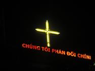 Trong những ngày qua, khi mà chính quyền Hà Nội bất chấp sự phản đối của giáo dân Thái Hà và các tu sĩ DCCT Hà Nội để biến khu đất Hồ Ba Giang thành công viên, những người đến Giáo xứ Thái Hà và Tu viện DCCT Hà Nội sẽ thấy một bảng điện tử lớn đặt trên lầu thượng Tu viện ngày đêm chạy với nội dung: “CHÚNG TÔI PHẢN ĐỐI CHÍNH QUYỀN HÀ NỘI CHIẾM ĐOẠT ĐẤT HỒ BA GIANG – TÀI SẢN HỢP PHÁP CỦA NHÀ THỜ THÁI HÀ”. Cha Giuse Nguyễn Văn Phượng, chánh xứ Giáo xứ Thái Hà cho biết: “Đây là một trong những cách chúng tôi phản đối việc làm phi pháp của chính quyền Hà Nội khi bất chấp tiếng nói của chúng tôi để thi công trái phép trên khu vực đất Hồ Ba Giang. Còn có những cách thức khác để phản đối việc làm phi pháp của chính quyền Hà Nội, nhưng đây là một trong những cách chúng tôi thực hiện. Mục đích để phản đối chính quyền và cũng để cho mọi người ngày đêm, có thể từ xa đọc được nội dung này. Khi đọc được nội dung này, họ sẽ thắc mắc, họ tìm hiểu và họ nhận ra bộ mặt thật của chính quyền Hà Nội đang đối xử với tôn giáo, cụ thể là đối với Giáo xứ Thái Hà và Tu viện DCCT Hà Nội chúng tôi…Có nhiều người dân không hiểu sự việc, họ chỉ thấy chính quyền làm công viên và tưởng như vậy là một việc làm tốt; nhưng họ không biết rằng, đó là khu đất thuộc sở hữu, quản lý hợp pháp của chúng tôi, mà trong các văn bản gần đây khi chính quyền nói về khu đất này cũng công nhận điều đó, nhưng giờ họ lại hành xử như vậy.”